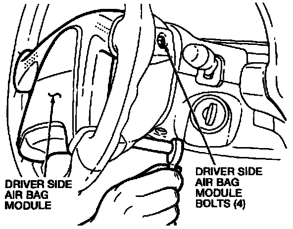 2. Tighten the four driver side air bag module bolts to 4-5.6 N.m (3-4 lb-ft).