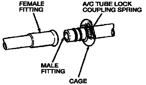 1. Check for a missing or damaged A/C tube lock coupling spring. A damaged A/C tube lock coupling spring can be removed with a small hooked wire. Install a new A/C tube lock coupling spring if the old one is damaged or missing.