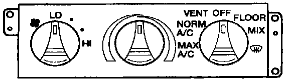 The air flow control knob includes additional positions for NORM A/C and MAX A/C along with the familiar VENT, FLOOR, OFF, MIX, and DEFROST. This knob is connected to an A/C damper door switch which controls the vacuum motors via the vacuum hose harness.