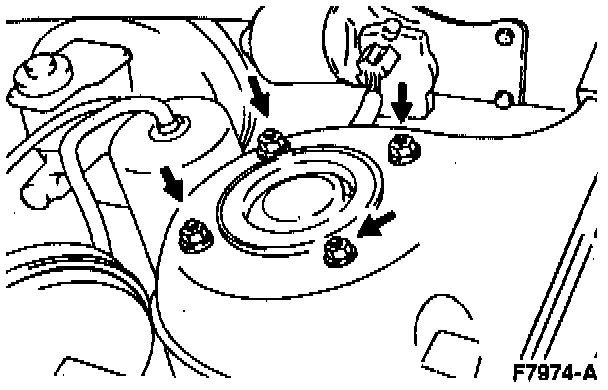 3. Loosen and remove the front shock absorber upper mounting bracket nuts.