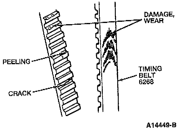 if it is contaminated with oil or grease. Also, inspect the timing belt for damage, wear, peeling, cracks, or hardening. If necessary, replace the timing belt.