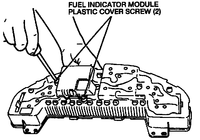 2. Remove the two fuel indicator module plastic cover screws.