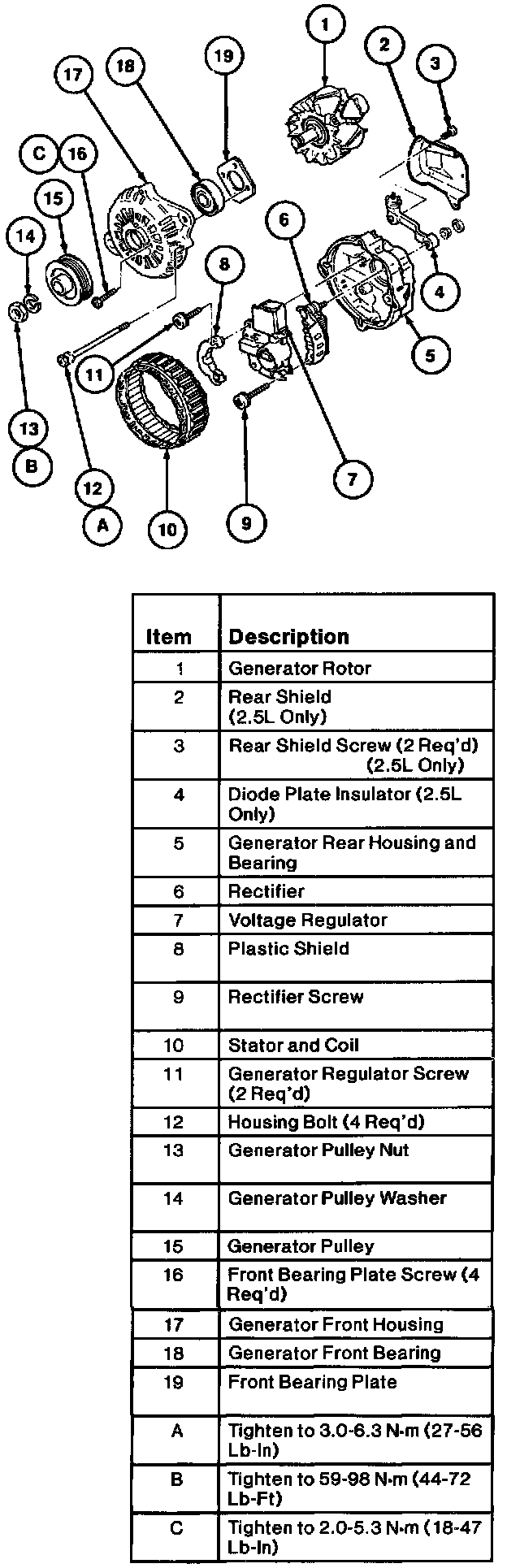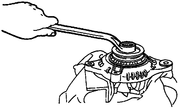 13. Tighten the generator pulley nut to 59-98 N.m (44-72 lb-ft).
