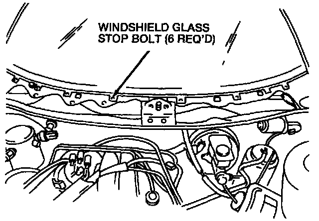 3. Remove the six windshield glass stop bolts. Remove the windshield glass stop.