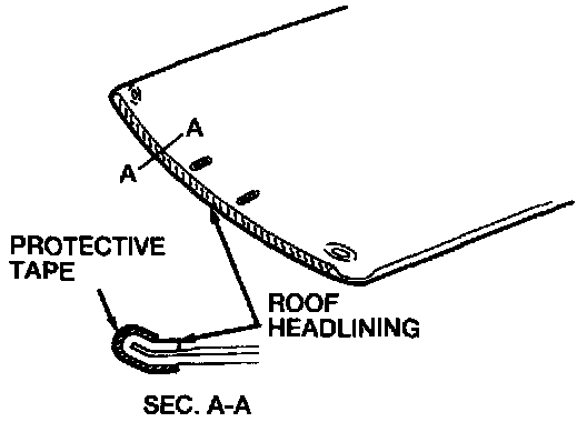 12. Apply a protective strip of masking tape along the front edge of the roof headlining.