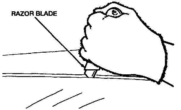 22. If the windshield glass is to be reused, use a razor blade knife to remove the old urethane from the windshield glass.