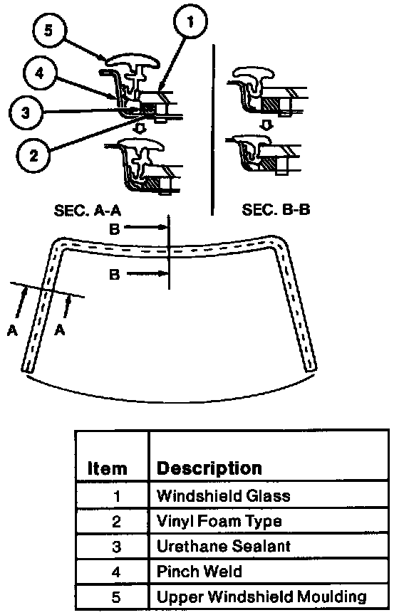 CAUTION: The upper windshield moulding must be installed before the sealant has hardened.