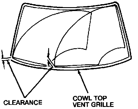 3. Position the windshield wiper pivot arm and windshield wiper blade assembly on the windshield wiper mounting arm and pivot shaft so that the clearance between the windshield wiper blade and the top of the cowl top vent grille is 28-32 mm (1.12-1.28 inch).