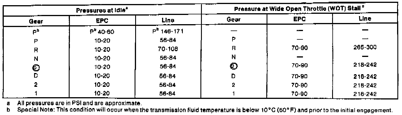 - Release EPC switch. Line pressure should rise to MAX pressure.