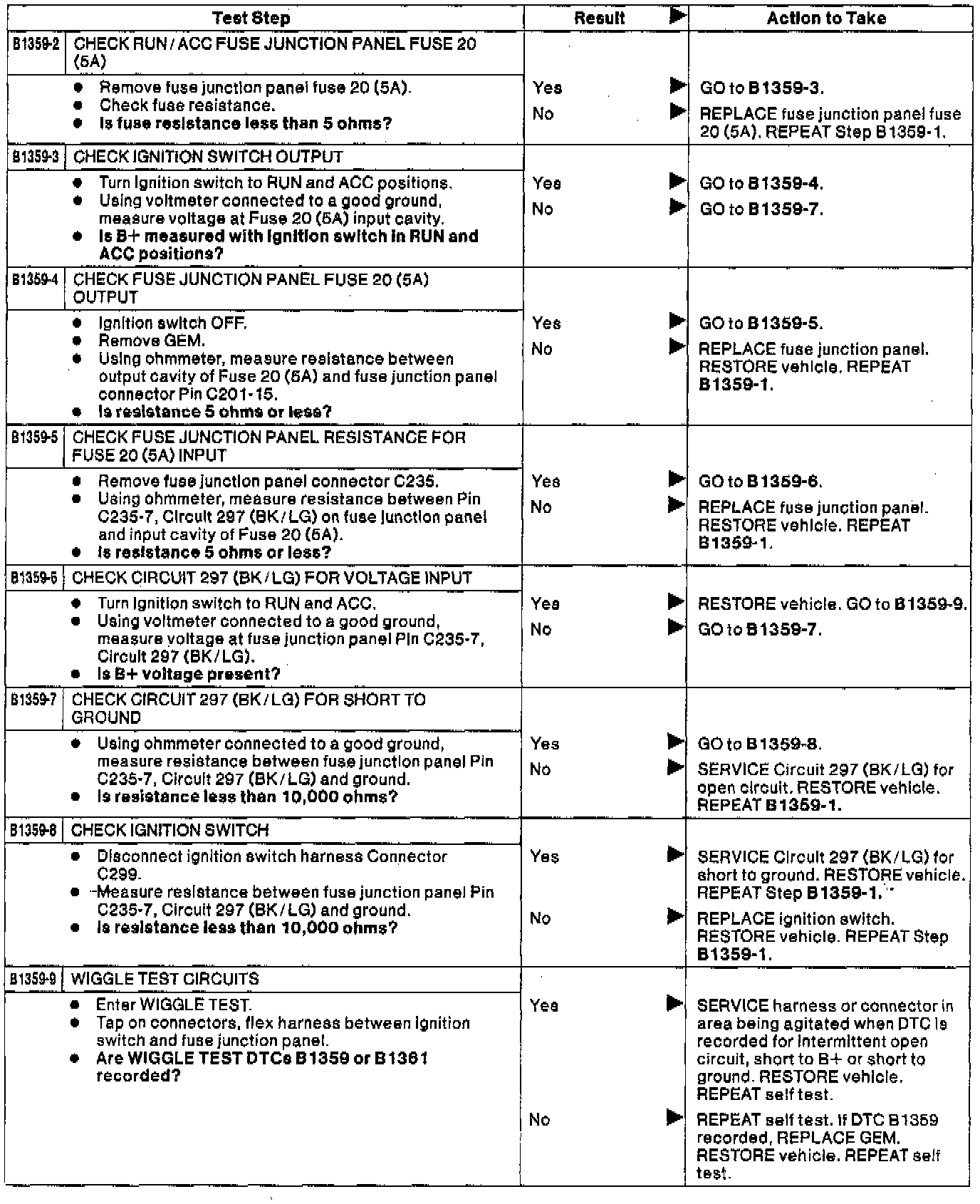 DTC B1359: Ignition Run/ACC Circuit Failure
