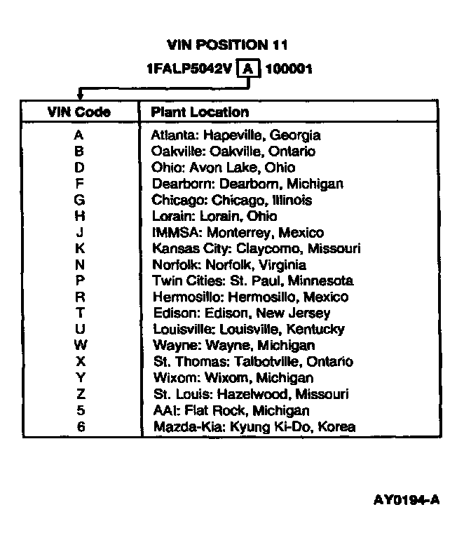 - The last six digits of the VIN indicate the Consecutive Unit Number of each unit built at each assembly plant. The Consecutive Unit Numbers begin as follows: