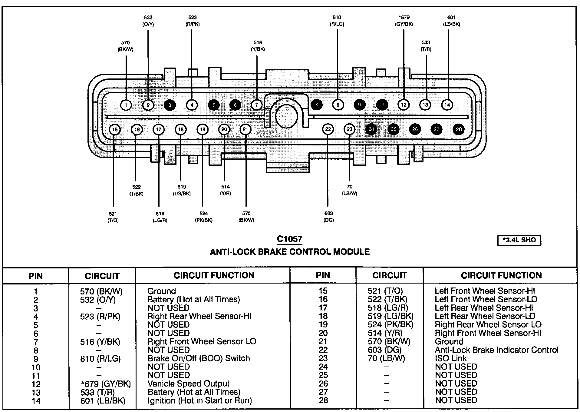 Taurus V6-3.0L VIN U