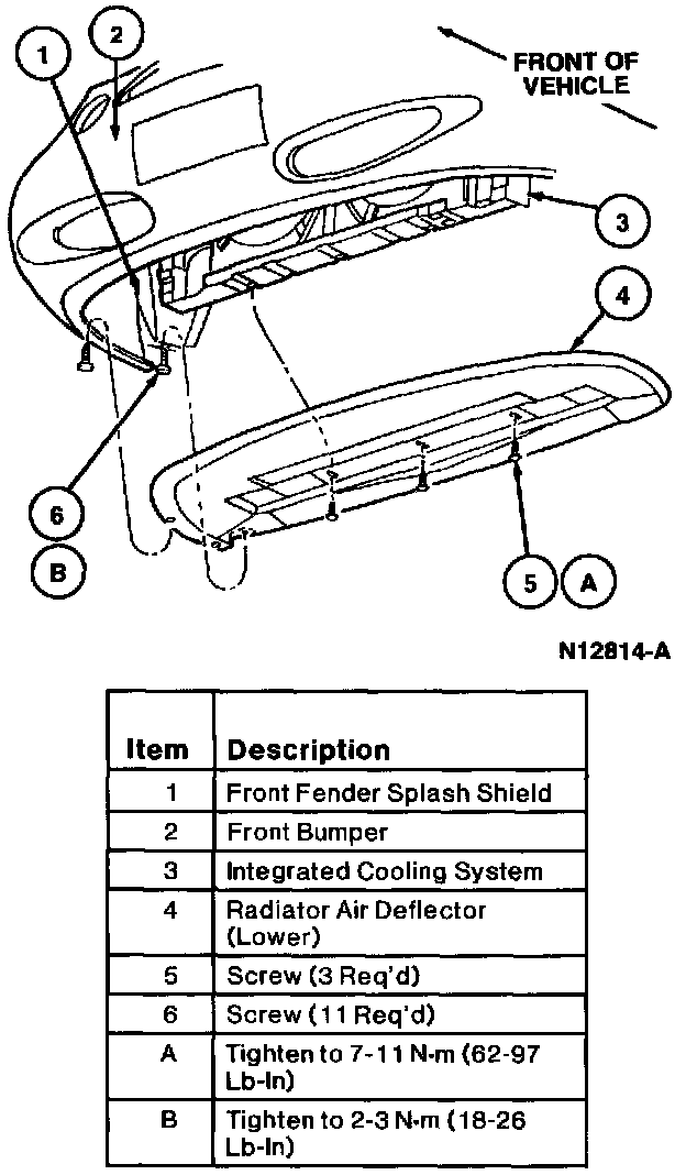 5. Install lower radiator air deflector. Tighten three splash shield-to-radiator screws to 7-11 N.m (62-97 lb-in) and remaining 11 screws to 2-3 N.m (18-26 lb-in).