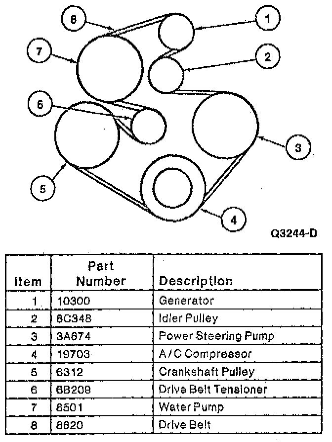 WARNING:Use caution when removing or installing drive belt to make sure that tool does not slip from drive belt tensioner and allow drive belt tensioner (6B209) to snap back, or personal injury and/or damage to drive belt tensioner and drive belt may occur.