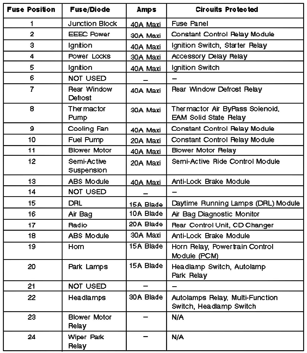 Taurus V6-3.0L VIN U