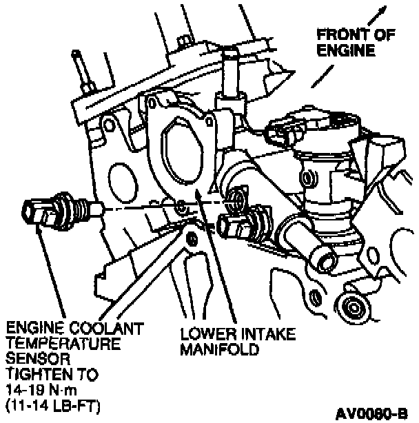 2. Tighten ECT sensor to 14-19 Nm (11-14 lb ft).