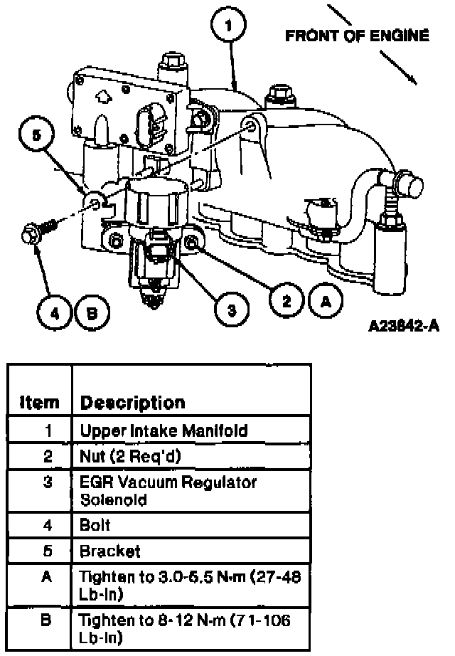 3. Remove retaining nuts and EGR vacuum regulator solenoid from bracket located at rear of upper intake manifold.