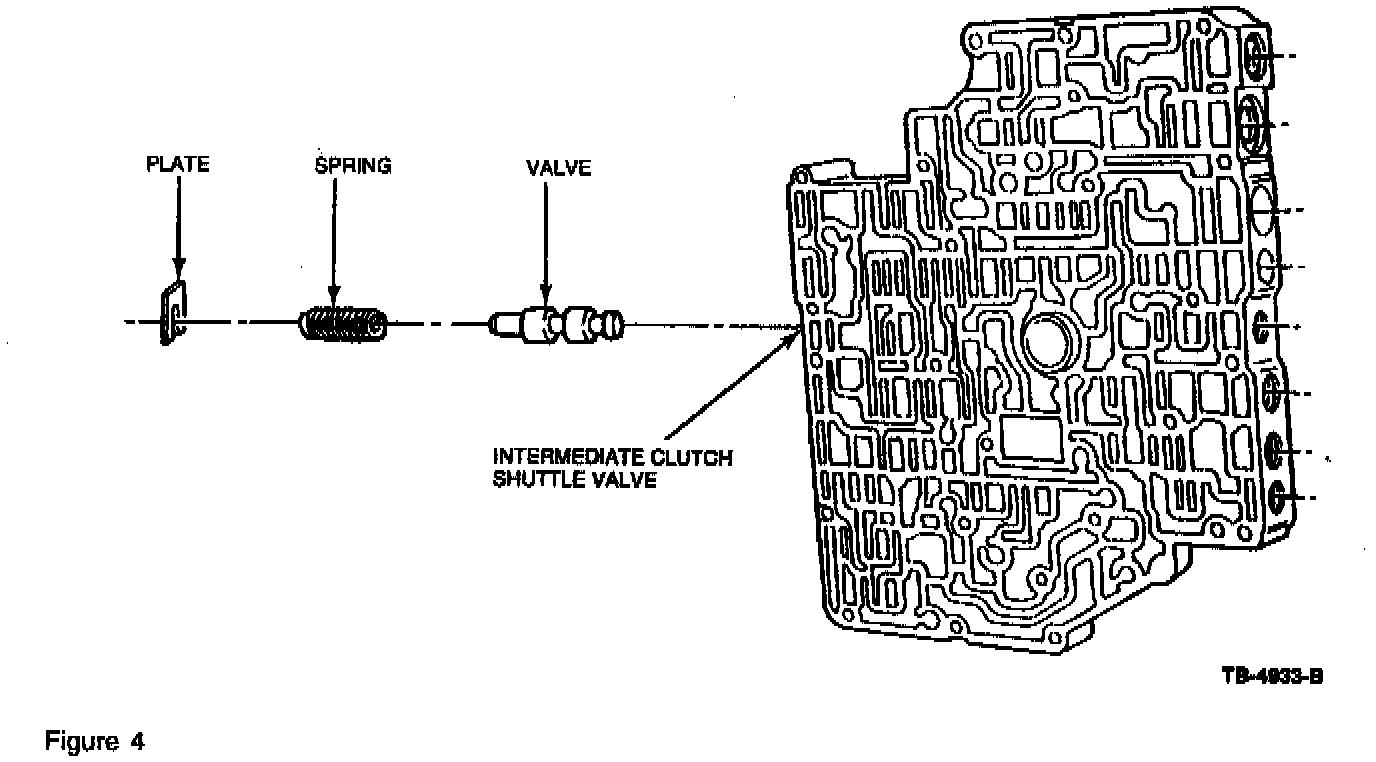 ^ Intermediate clutch shuttle valve stuck in main control bore (Bore # 42) (Figure 4)