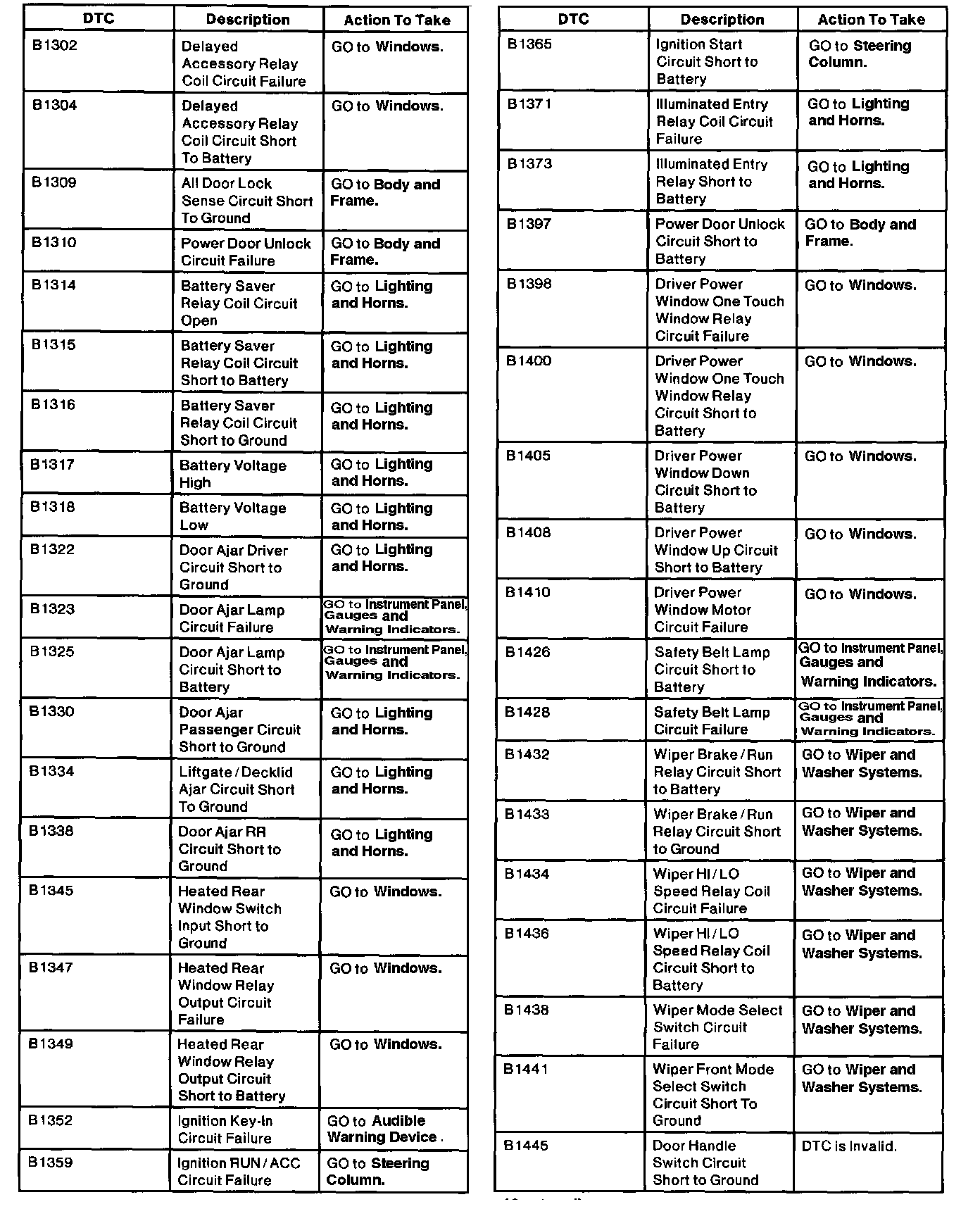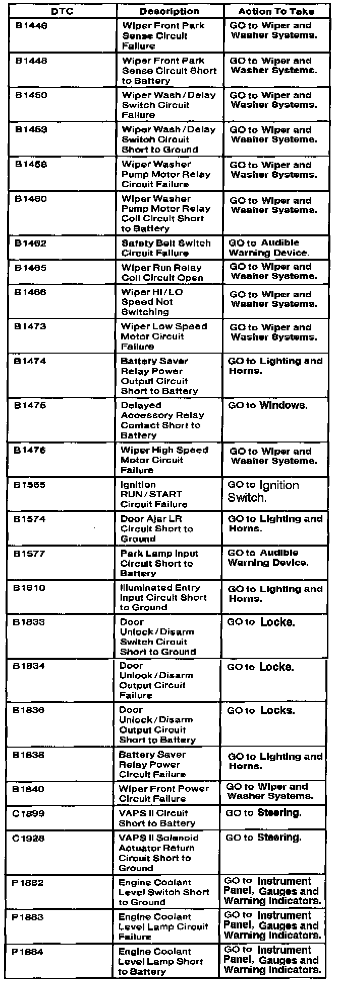 GEM Module Diagnostic Trouble Code Index