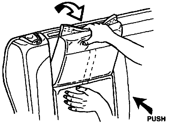 1. Push on seat back until it locks and cannot be pulled forward.2. Pull back flap to release from top of seat.