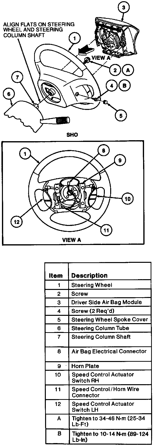 3. Install steering wheel to steering column using new retaining screw. Tighten Torx(R) screw retaining steering wheel to 34-46 N.m (25-34 Lb-Ft).