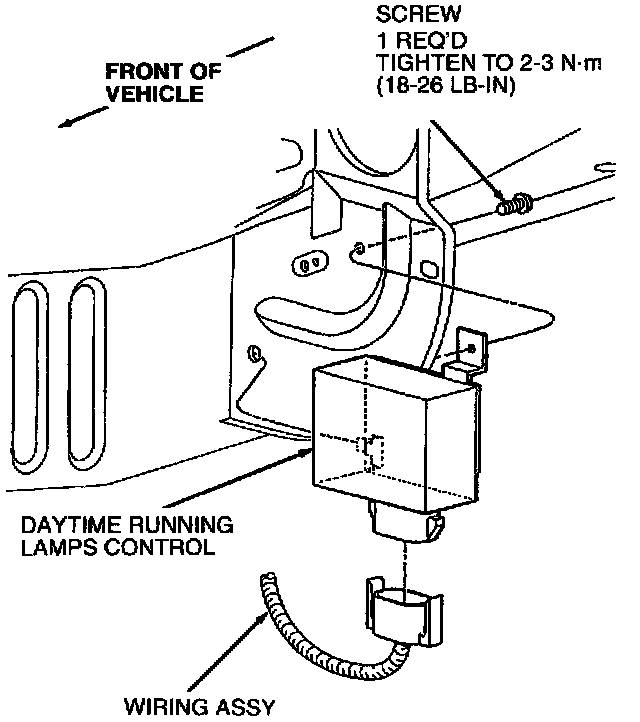 2. Remove screw retaining DRL control to front fender apron and remove DRL control.