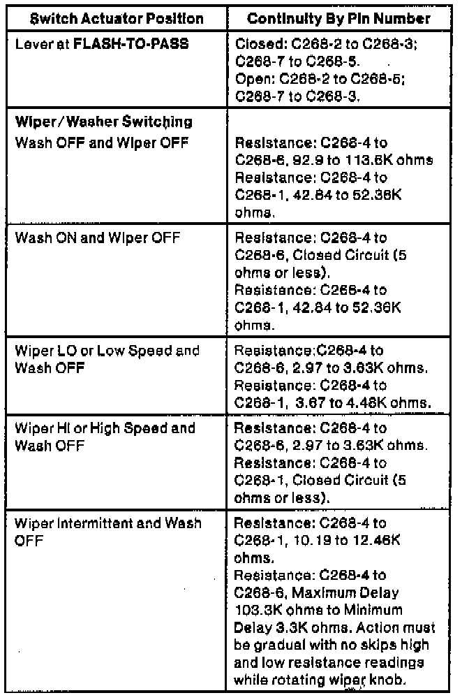 Multifunction Switch Continuity Test
