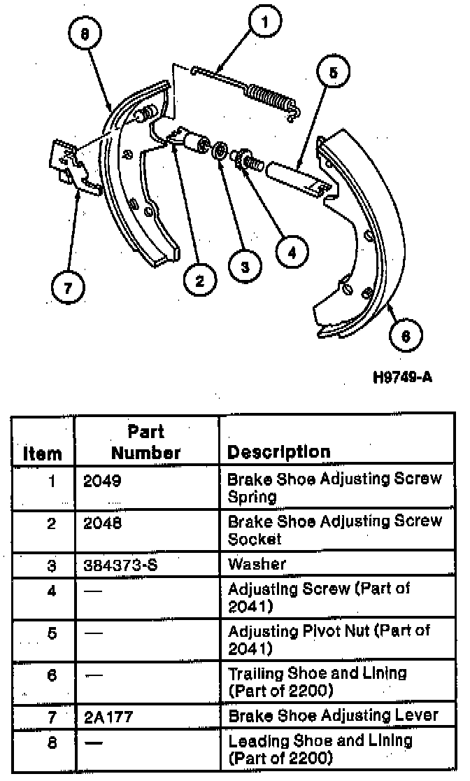 1. Remove brake shoe adjusting screw spring. Spread rear brake shoes and linings apart at top.