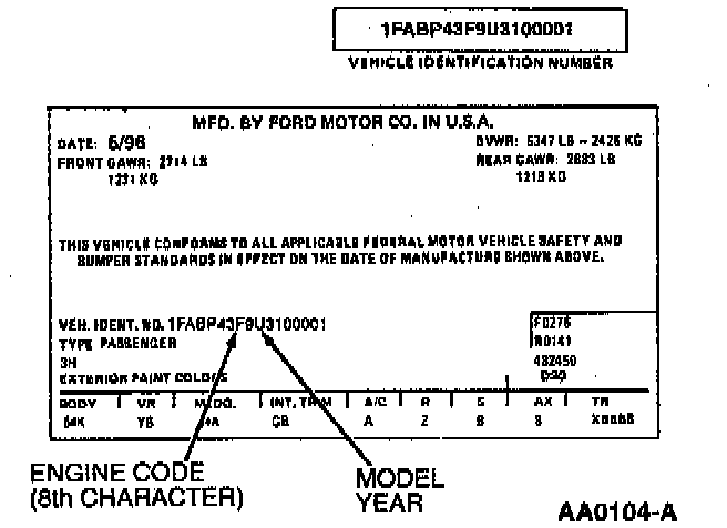 - Engine code (letter or number) used to determine the engine type and size (8th digit of the VIN).