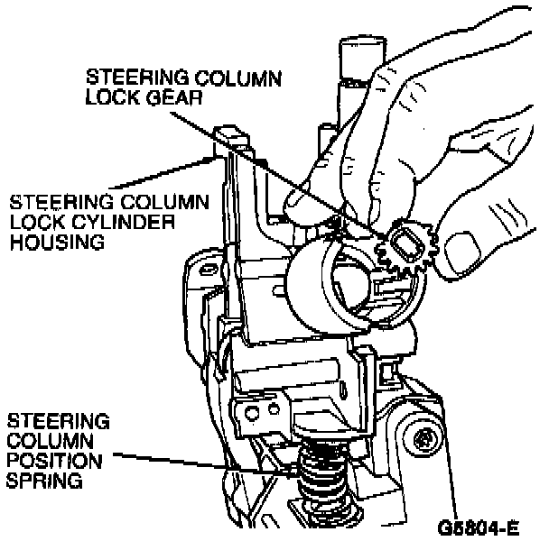 16. Install steering column lock gear. Coat steering column lock gear with Ignition Lock Grease FOAZ-19584-A or equivalent meeting Ford specification ESA-M1C232-A.