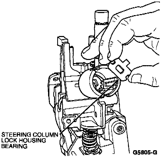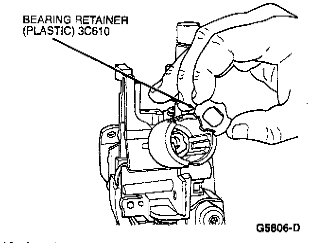 17. Install metal steering column lock housing bearing. Lubricate with Multi-Purpose Grease DOAZ-19584-AA or equivalent meeting Ford specification ESB-M 1 C93-B.