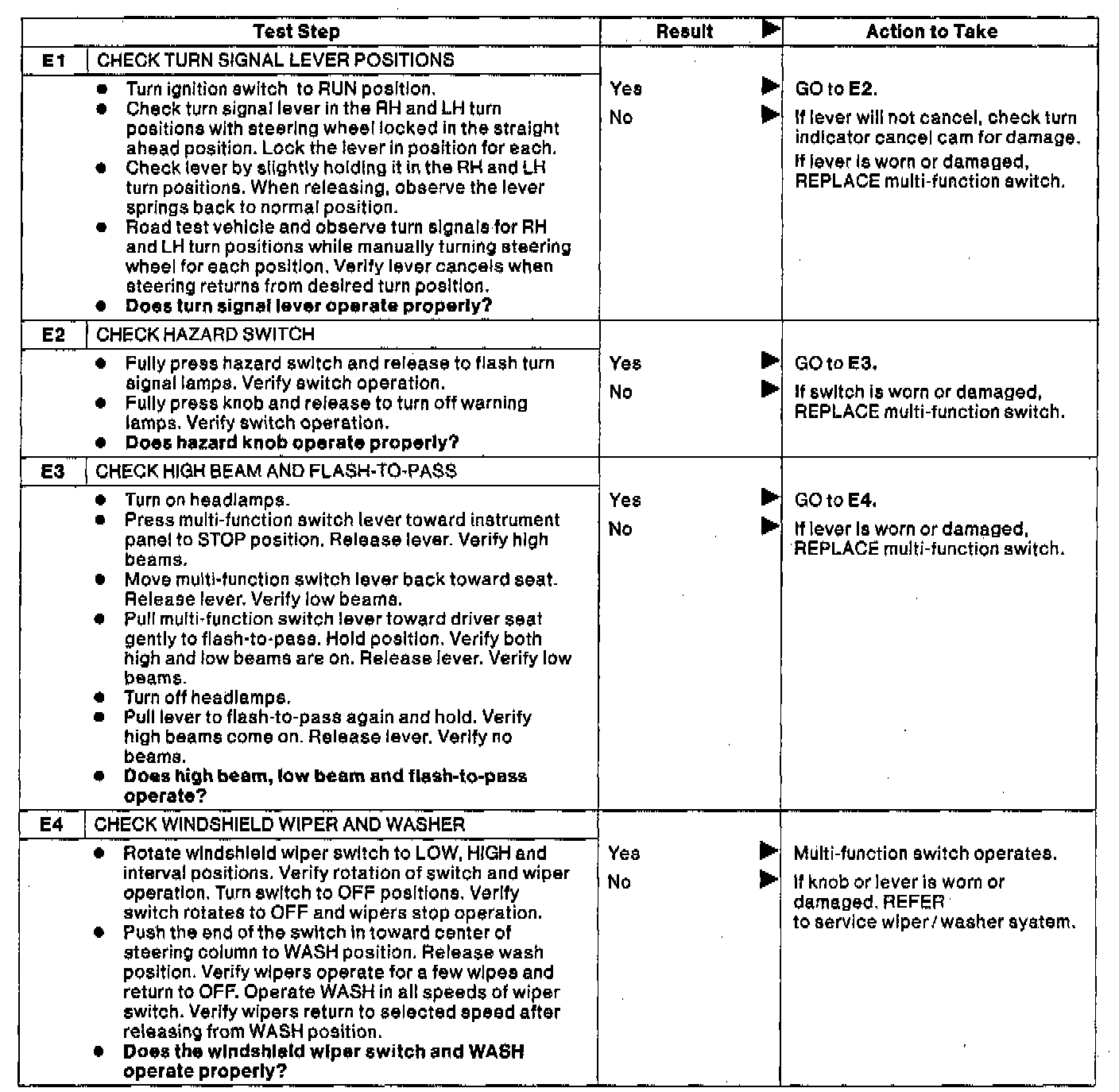 E: Multifunction Switch Does Not Operate