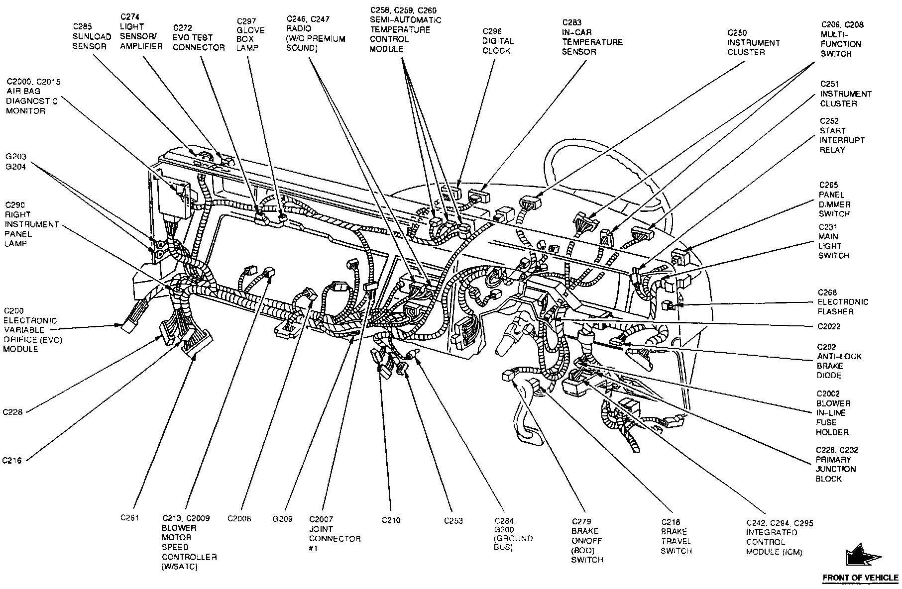 The Semi-Automatic Temperature Control Module is located at the center of the instrument panel.
