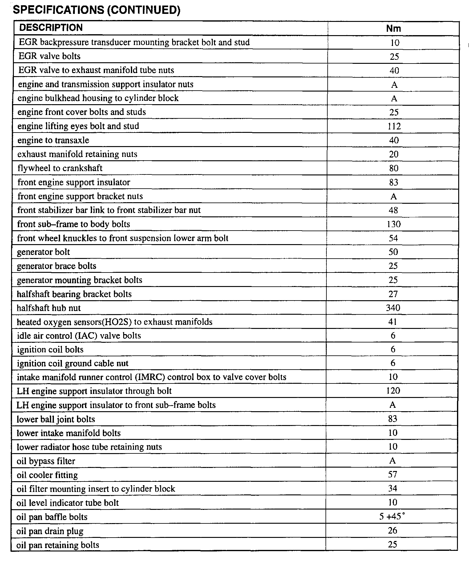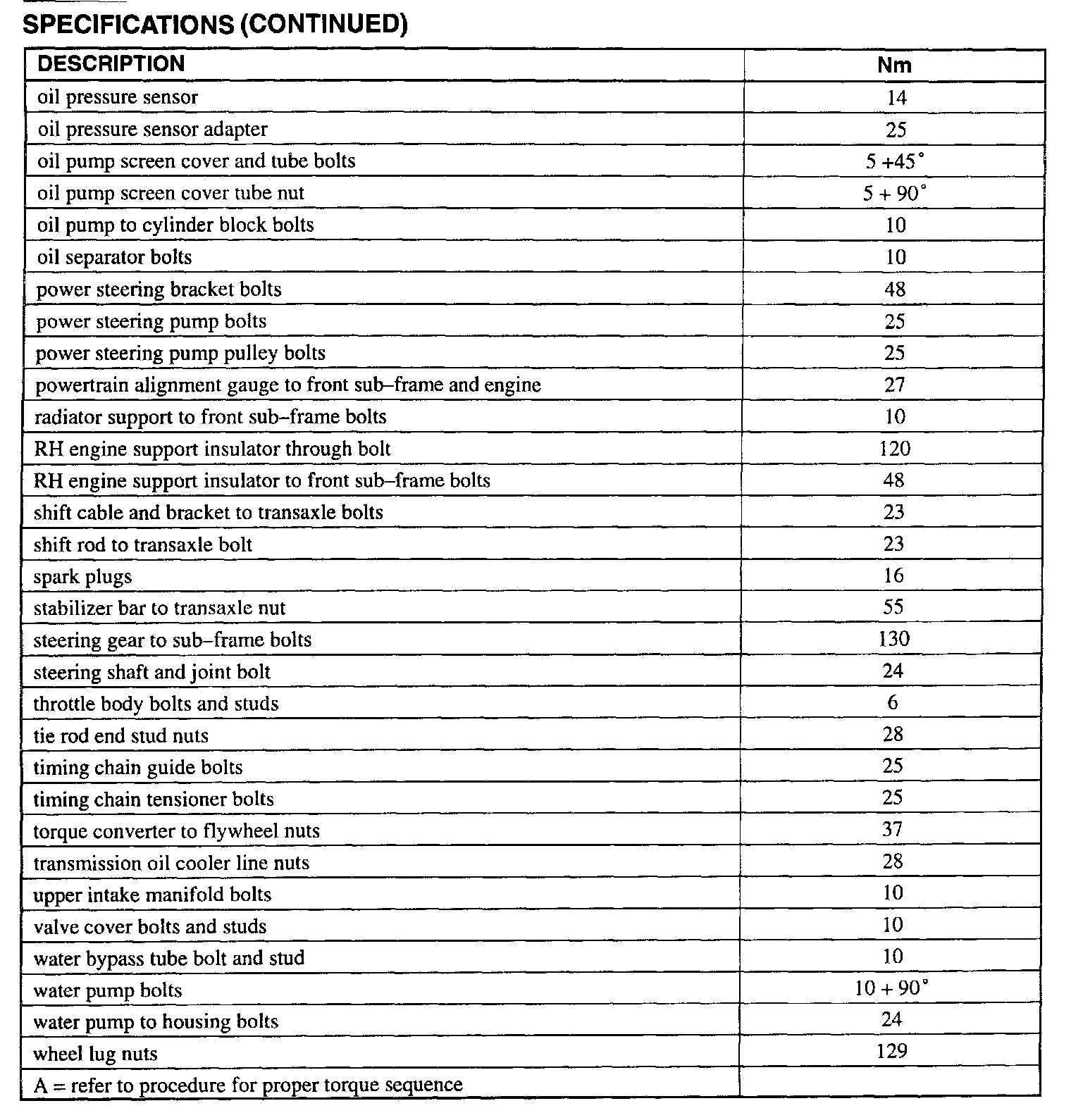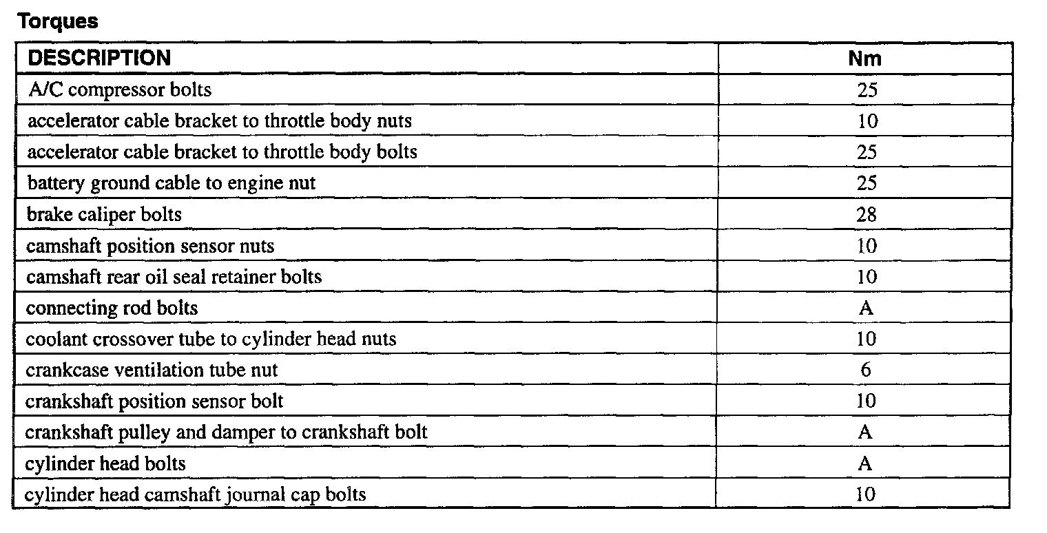 Torque Specifications