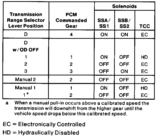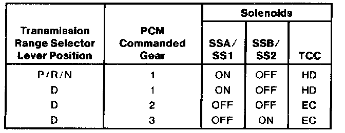 Shift Solenoid Operation Chart