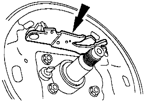 5. Pull the parking brake actuating lever through the slot in the brake backing plate.