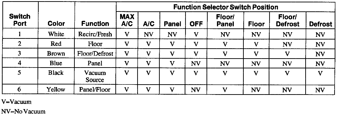 Function Selector Switch Vacuum Application Chart: