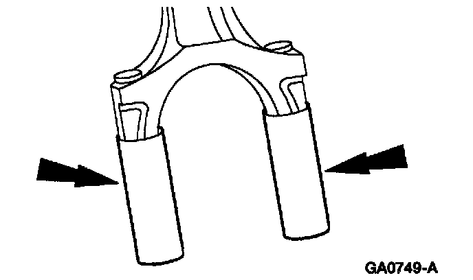 7. Install a short length of rubber tubing over the connecting rod bolts to avoid damage to the crankshaft journals.