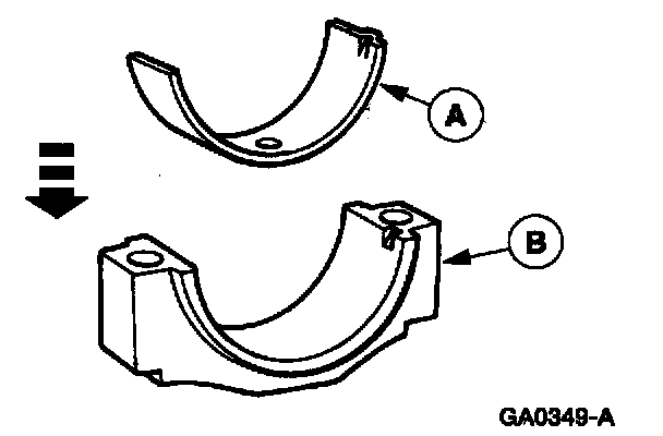 4. Install the (A) lower connecting rod bearing in the (B) connecting rod cap.