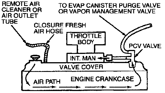 The Positive Crankcase Ventilation (PCV) System cycles crankcase gases back through the engine where they are burned. The PCV valve regulates the amount of ventilating air and blow-by gas to the intake manifold and prevents backfire from traveling into the crankcase. The PCV valve should be mounted in a vertical position. On some applications, the PCV system is connected to the evaporative emission system.