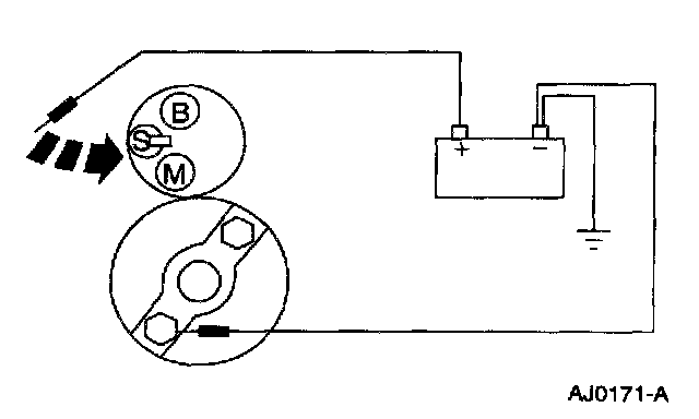 4. Touch the positive lead from the battery to the S-terminal and verify that the starter drive ejects.