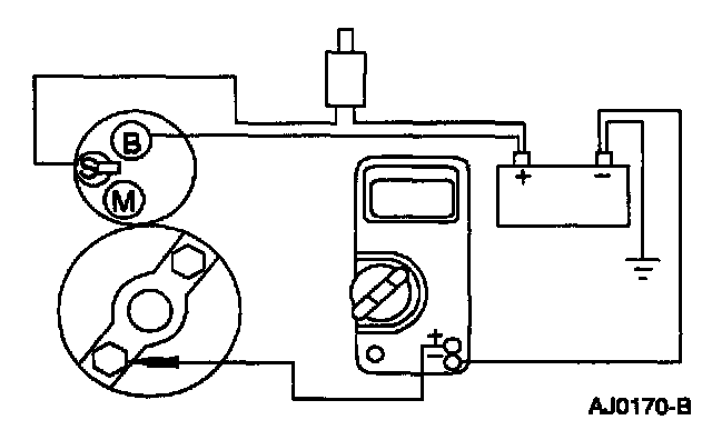 3. Connect the positive (+) lead of 73 Digital Multimeter to the starter motor housing. The connection must be clean and free of rust or grease. Connect the negative (-) lead to the negative (-) battery terminal.