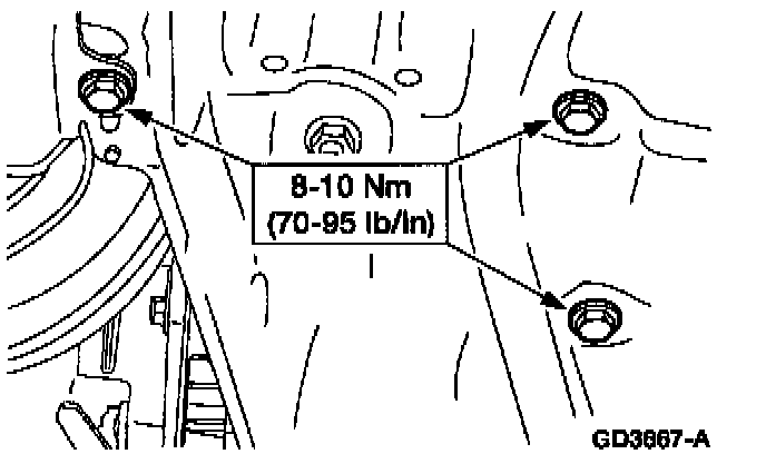 2 Remove the LH front engine support insulator nuts.