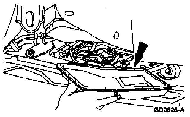 NOTE: Remove all the bolts securing the transmission fluid pan except the four corner bolts; then remove the two from the rear and allow the pan to drain.