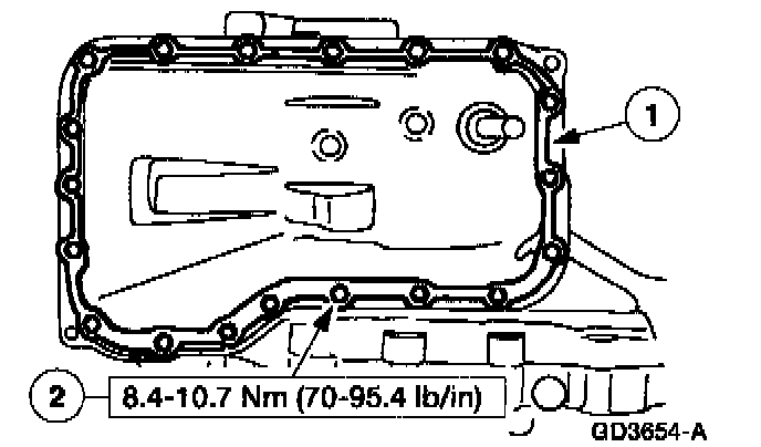 4. Install the transmission fluid pan with a new oil pan to case gasket.