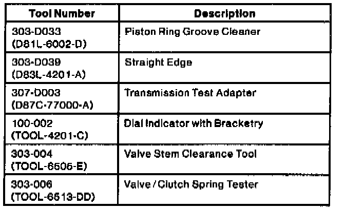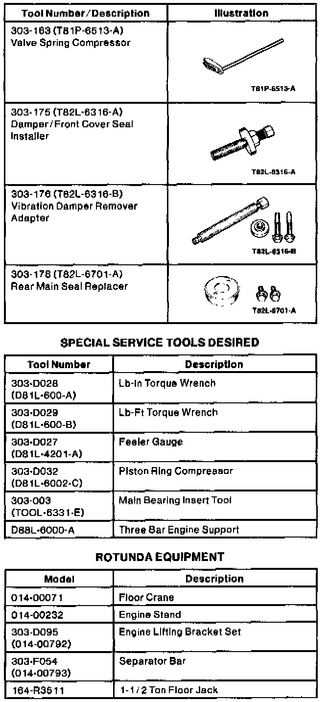 Engine: Tools and Equipment
