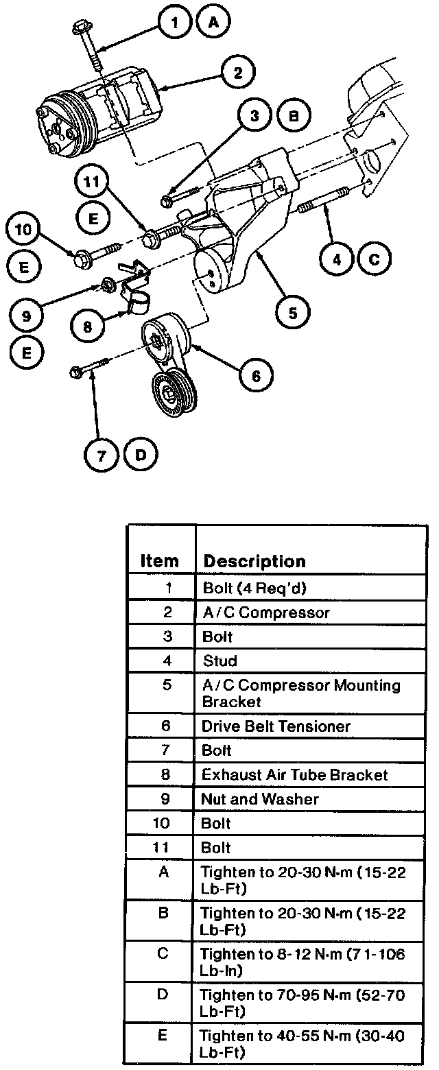 1. Install A/C compressor mounting bracket with four retaining bolts.