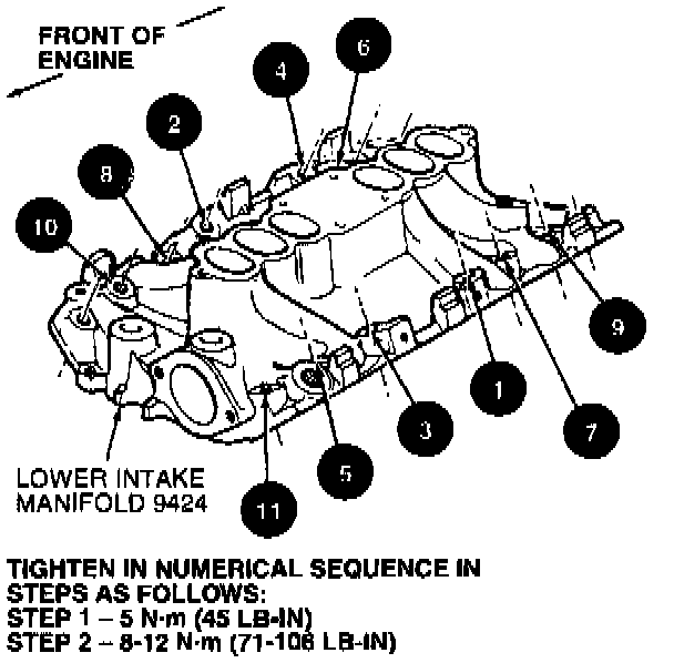 Tighten in sequence shown in three steps:
