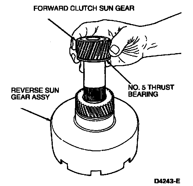 2. NOTE: The forward clutch sun gear and reverse sun gear assembly is assembled as part of the transmission assembly procedure.