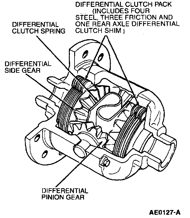 The Traction-Lok axle assembly, except for the differential case and its internal components, is identical to the conventional axle.